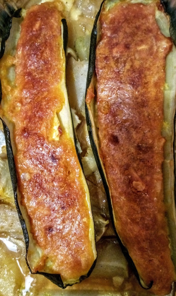 Si possono infine riempire di cacio e uova anche le zucchine, stavolta tagliandole in due longitudinalmente facendo due barchette, ma data la loro delicatezza sarà bene cuocerle in forno, avendo però l’accortezza di cospargerle esternamente di zucchero a velo, in modo tale che quest’ultimo con il calore caramellizzi indurendosi, così da proteggere la zucchina stessa evitandole lo spappolamento.